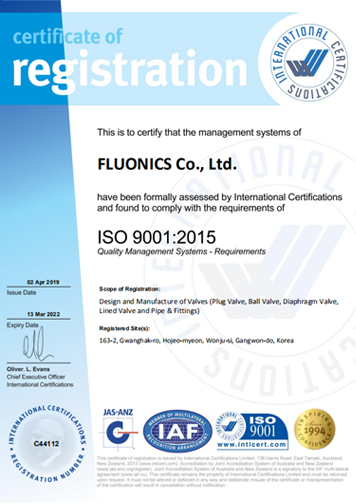 自 2003 年在韩国成立以来,FLUONICS 一直生产用于化学加工特别是高腐蚀性化学品的含氟聚合物内衬阀门、管道和配件。